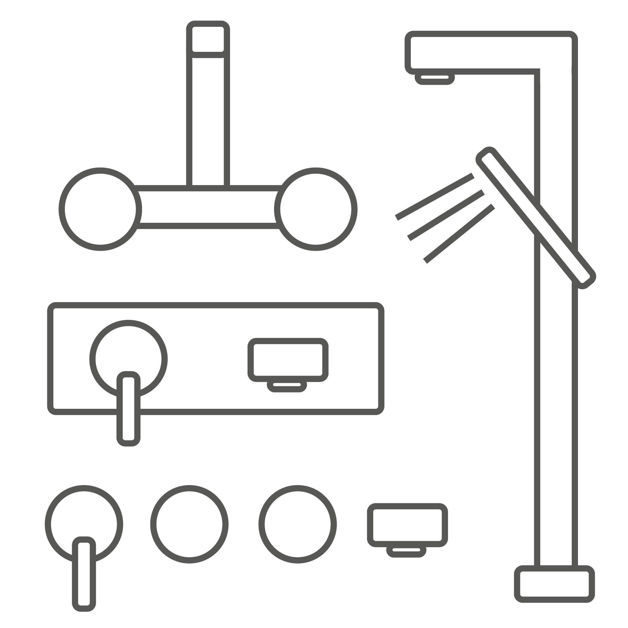 Freedom in choosing the faucet - wall-mounted, concealed, floor-mounted, 1-, 3- and 4-hole